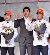 2013.11.27 14: 22한화맨 정근우-이용규,'독수리 유니폼 잘 어울리죠?'