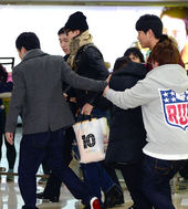 2013.11.29 12: 35열혈 여성팬의 난입에 황급히 입국장 나서는 비
