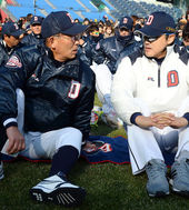 2013.12.01 14: 32송일수 감독-홍성흔,'두산 담요에 나란히 앉아'