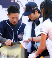 2013.12.01 14: 39'곰들의 모임' 행사에 적극적인 반응하는 오재원