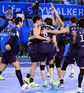 2013.12.01 16: 27승리의 기쁨 나누는 현대캐피탈 선수들