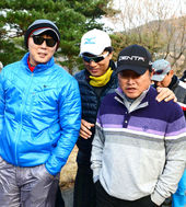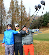 2013.12.02 14: 12골프채든 배영수-이승엽-진갑용,'우승 세레모니 다시 한번'