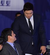 2013.12.02 11: 03문경은 감독과 인사 나누는 '괴물' 류현진