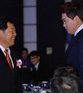2013.12.02 11: 03김인식-류현진, '손 꼭잡고 다정한 인사 나누며'