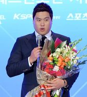 2013.12.02 11: 40올해의 선수상 수상한 류현우, '환하게 미소지으며'