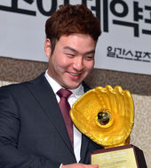 2013.12.03 13: 202년 연속 프로야구대상 박병호,'순금 글러브에 미소 활짝'