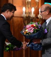 2013.12.05 11: 51송일수 감독, '황병일 코치, 올해의 코치상 축하합니다'