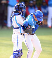 2013.12.07 14: 52이여상-황재균,'훈훈한 보디체크(?)'
