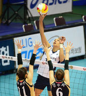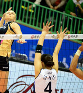 2013.12.08 18: 16양효진, '김희진 블로킹 피해'