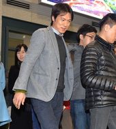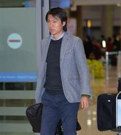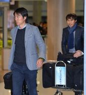2013.12.12 06: 34쑥스런 미소짓는 홍명보, '장시간 비행에 세수도 못했네요'