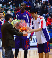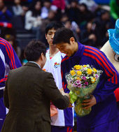 2013.12.26 19: 02KT에서 오리온스로 환영의 꽃다발 전달식