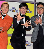 2013.12.29 20: 28유재석,'무한도전 팀과 함께 깜찍한 포즈'