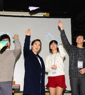 2014.01.07 18: 59박철민-윤유선-박희정-유세형,'종이비행기 날리며 함박웃음'