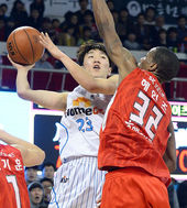 2014.01.19 17: 48빠져나가는 김민구와 어쩔줄 몰라하는 헤인즈