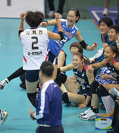 2014.01.19 17: 16미녀 올스타 배구선수들의 화끈한 득점 세레모니