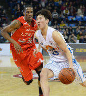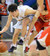 2014.01.19 17: 17넘어질뻔한 김민구와 놀라는 김선형