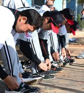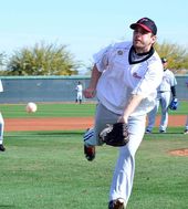2014.01.20 09: 12스파이크 끈 동여메는 봉중근과 투수들