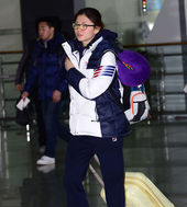 2014.01.22 11: 57심석희,'장시간 비행에는 목쿠션 필수죠'