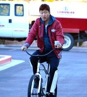 2014.01.22 09: 31아침 일찍 자전거를 타고 훈련장으로 이동하는 이택근
