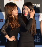 2014.01.23 18: 47서울가요대상, 소녀시대 유리-윤아,'밀착 드레스로 각선미 뽐내며'