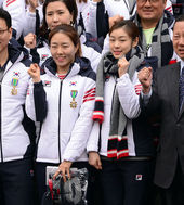 2014.01.23 16: 11김연아-이상화,'소치 격려의 목도리 전달'