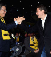 2014.01.25 17: 08성남FC 구단기 흔드는 신문선
