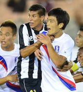 2014.01.26 12: 59한국 코스타리카 평가전 에스테반,'김기희의 멱살(?)을 잡아'