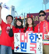 2014.01.26 09: 06국기를 흔들며 양 팀을 응원하는 응원단