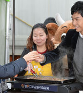 2014.01.27 12: 47한우 먹여주는 이승기, '미소는 덤으로~'