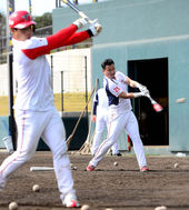 2014.01.28 20: 29배팅볼 던져주는 한대화 수석코치