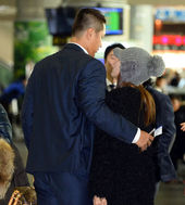 2014.01.29 09: 33아내와 인사 나누는 이대호,'애틋한 눈빛교환'