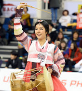 2014.02.01 14: 04한복 차려입은 박기량,'명절 분위기 불씬'