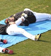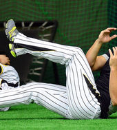 2014.02.02 16: 13소프트뱅크 이대호-김무영,'스트레칭도 함께'