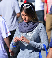 2014.02.02 06: 43미국 미모의 여성팬, 한국 미국 평가전 기다리며 손톱손질