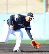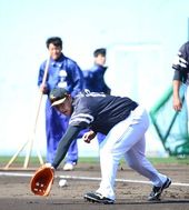 수비 훈련하는 이대호,'이 정도 공 쯤이야~'