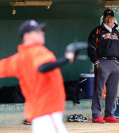 새 외국인 투수 앨버스 지켜보는 김응룡 감독