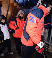 2014.02.05 03: 39김선옥-김동현-원윤종,'봅슬레이 트랙워킹을 위해 아이젠 준비'