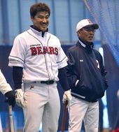 송일수 감독-홍성흔,'미소로 나누는 대화'