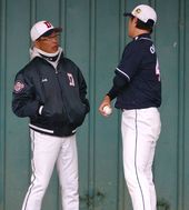 2014.02.07 16: 52이용찬과 대화 나누는 두산 송일수 감독