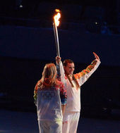 2014.02.08 08: 55소치올림픽 개막식, 성화 건네 받는 이리나 로드니나