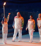 2014.02.08 08: 52소치올림픽 개막식, 성화 건네 받는 이신바예바