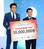 2014.02.10 14: 40명예홍보대사 장동건,유엔세계식량계획 지원금 전달