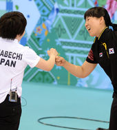 2014.02.11 16: 51컬링-김지선,'일본 선수들과 격려의 악수'