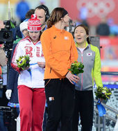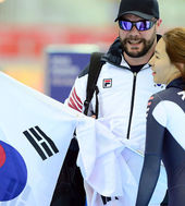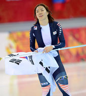 올림픽 2연패 이상화,'자랑스럽게 태극기 펄럭이며'