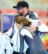 2014.02.12 07: 55올림픽 2연패 이상화,'케빈 코치에게 안겨'