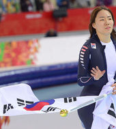 2014.02.12 07: 45올림픽 2연패 이상화,'눈물을 글썽이며 태극기 흔들어'