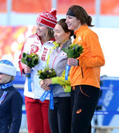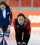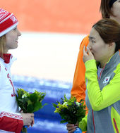 2014.02.12 01: 17올림픽 2연패 이상화,'올가 파트쿨리나의 축하를 받으며'