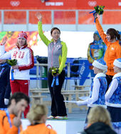 2014.02.12 01: 12금메달 이상화를 부러운 눈빛으로 바라보는 왕 베이싱