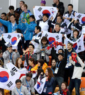 2014.02.12 01: 20올림픽 2연패 이상화에게 뜨거운 태극기 물결과 환호!