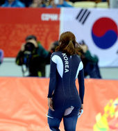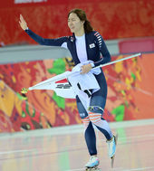 2014.02.12 01: 08올림픽 2연패 이상화,'선글라스를 금벅지에 차고 태극기 펄럭!'